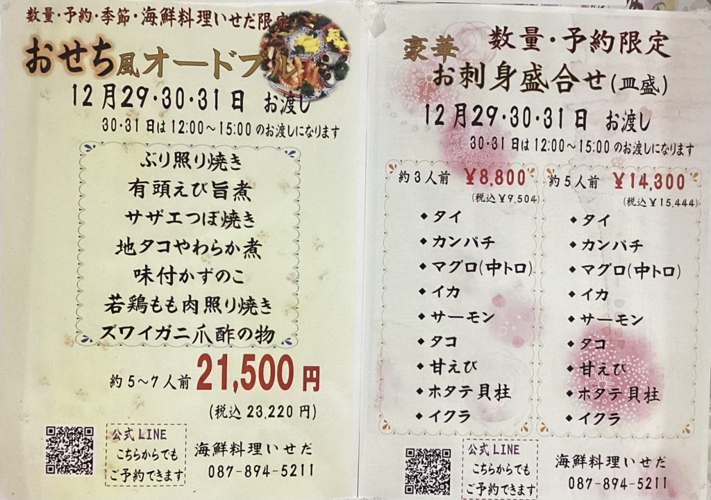 お刺身盛り合わせと合わせてご予約お待ちしております